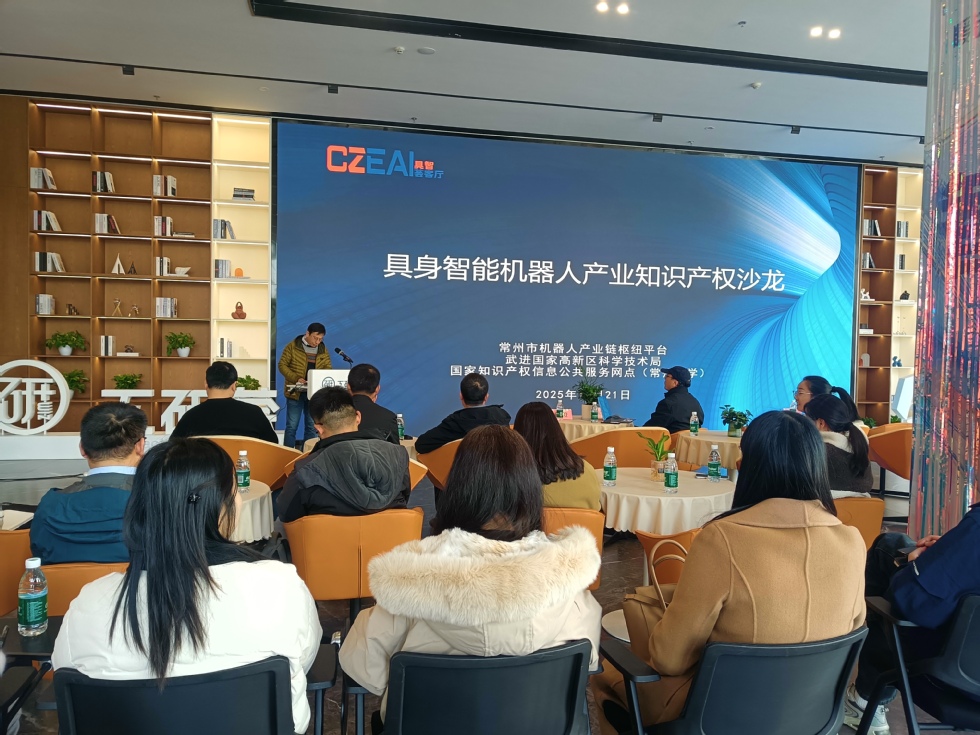 11月21日下午,由常州大学国家知识产权信息公共服务网点与武进国家高新区科学技术局联合主办的“具身智能机器人产业知识产权沙龙”活动在武进国家高新区工研荟科技产业园7号楼一楼荟客厅大会议室顺利举行。此次活动旨在进一步推动具身智能机器人产业知识产权的创造、运用与保护,提升企业知识产权战略管理与成果转化能力。活动现场汇聚了武进高新区内众多从事具身智能机器人研发、生产的高新技术企业及科技型中小企业的技术研发人员、知识产权管理人员,同时还有常州大学国家知识产权信息公共服务网点的查新员参与其中,共同就具身智能机器人产业的知识产权保护与管理进行了深入交流与探讨。