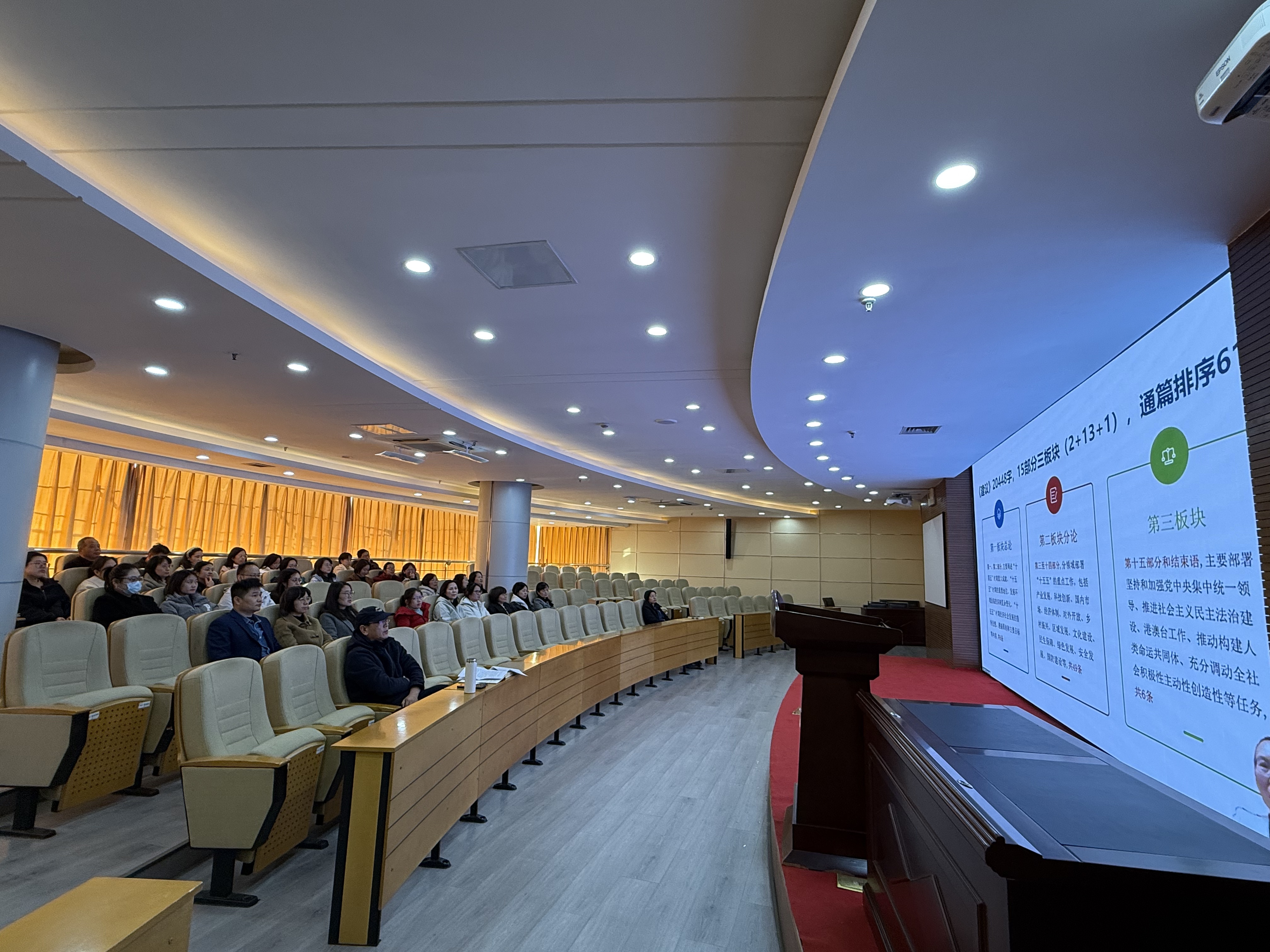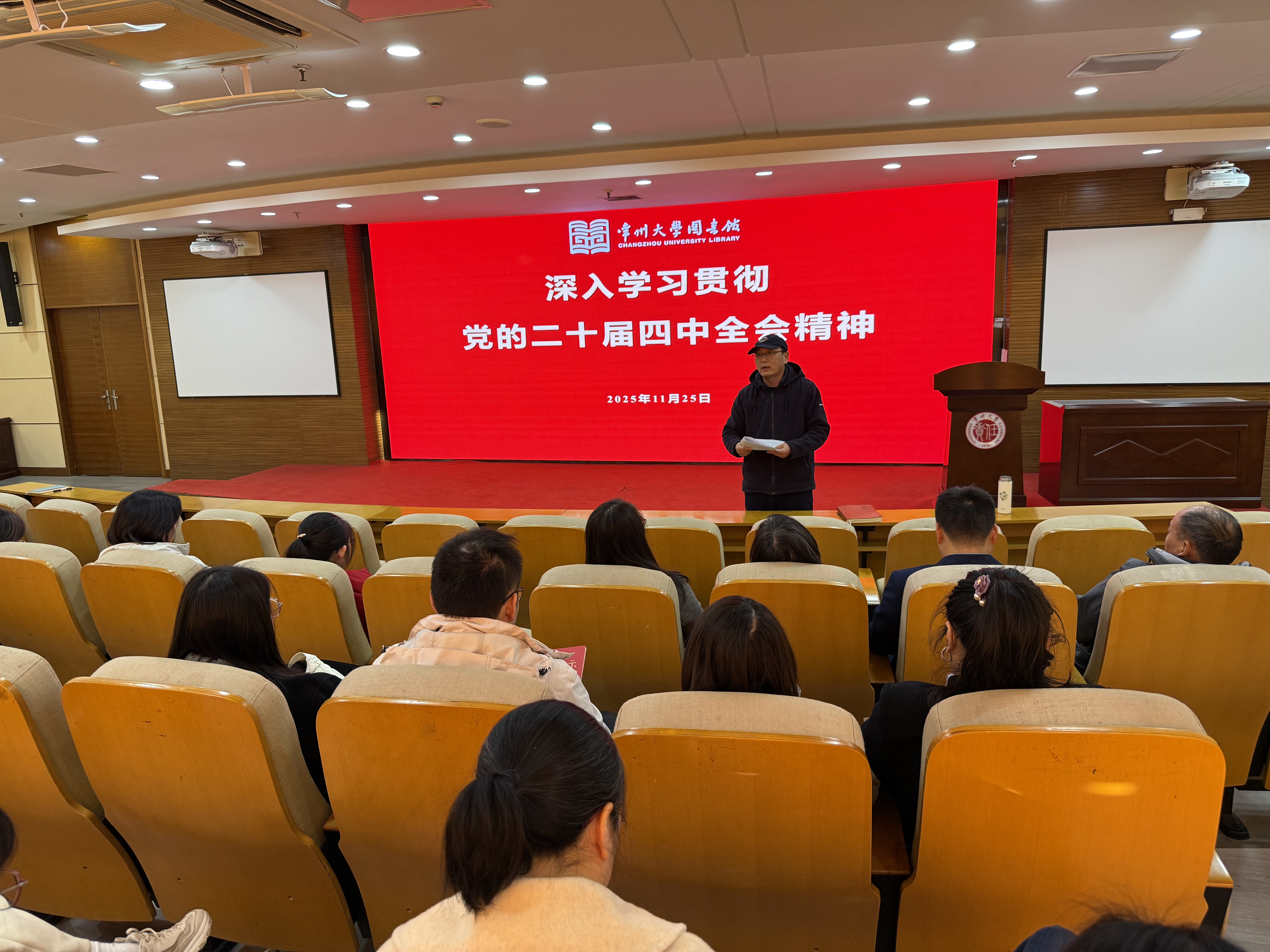 11月25日下午,图书馆在科教城六楼报告厅召开党的二十届四中全会精神学习会,会议由图书馆党总支书记、馆长侯新兵主持,全体馆员参加会议。