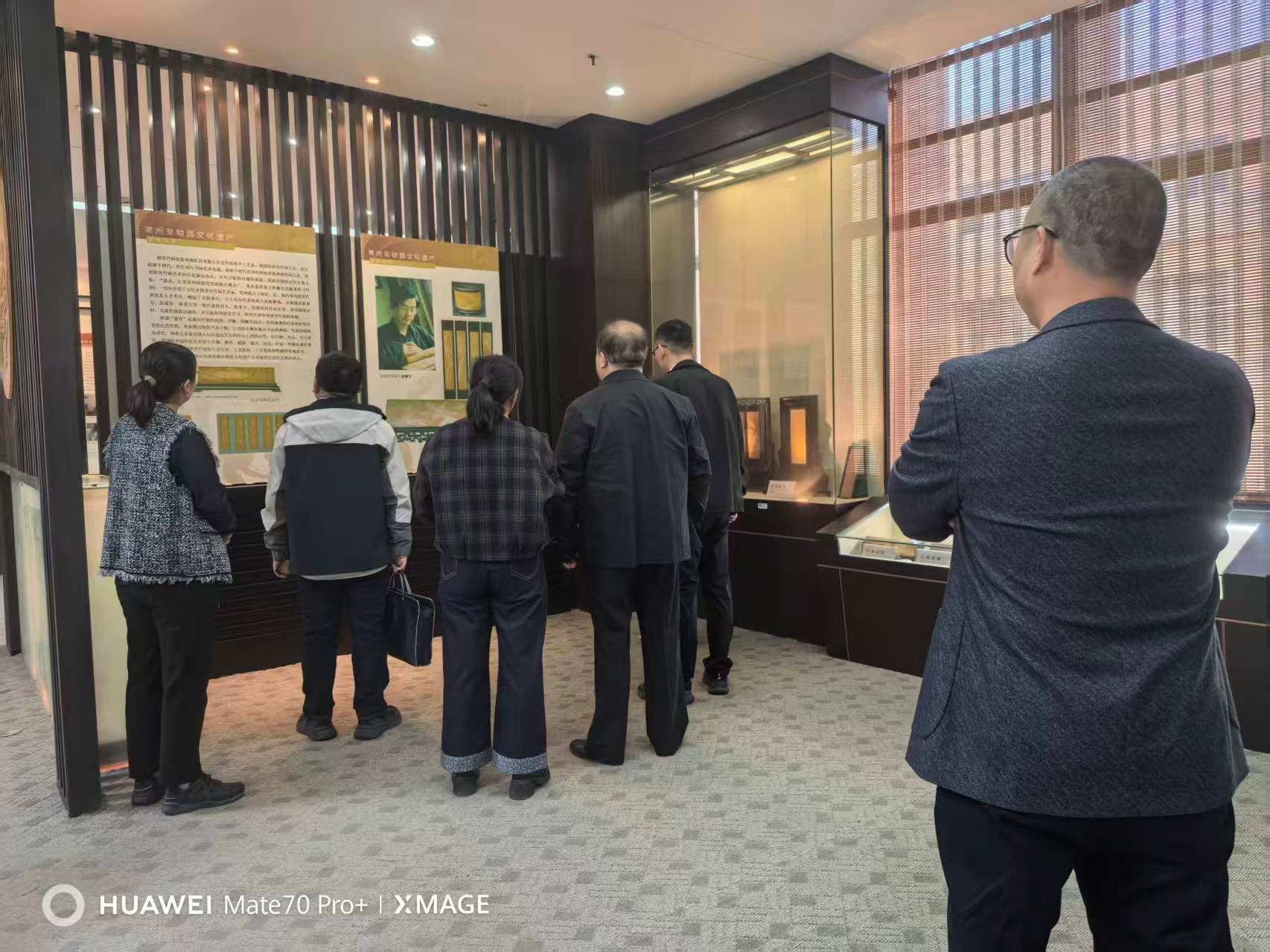 会前,在宗彩娥副馆长的陪同下,丁迅庭长一行实地走访了图书馆四楼非物质文化遗产博物馆。馆内收藏的苏绣、留青竹刻、金坛刻纸等非遗珍品,不仅展现了中华优秀传统文化魅力,更成为图书馆为法院提供传统文化法治教育的鲜活素材。