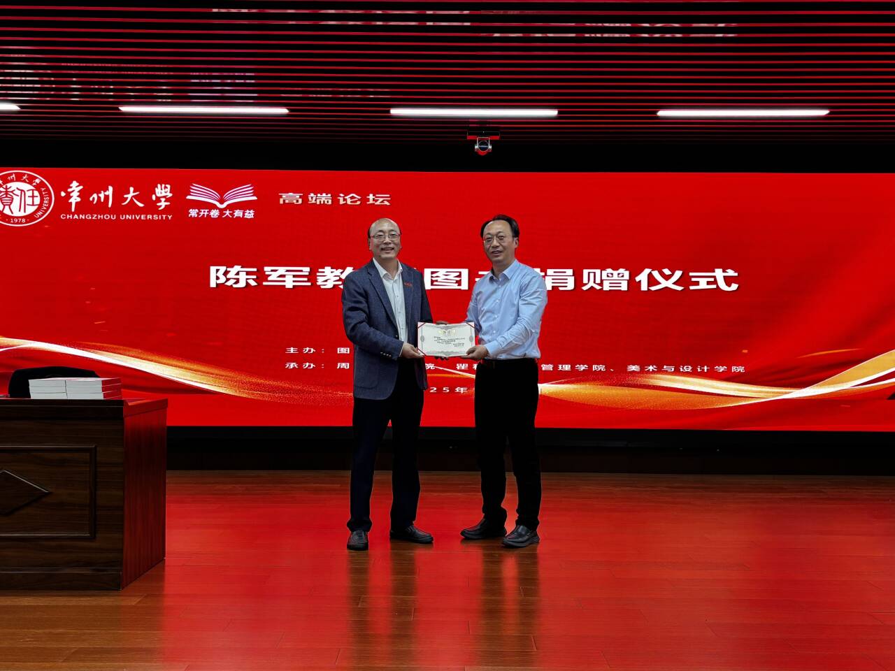 讲座结束后,陈军将其亲笔签名的著作《宝塔山下江苏文艺人》友情捐赠给我校图书馆,侯新兵接受捐赠并代表图书馆为其颁发捐赠证书。