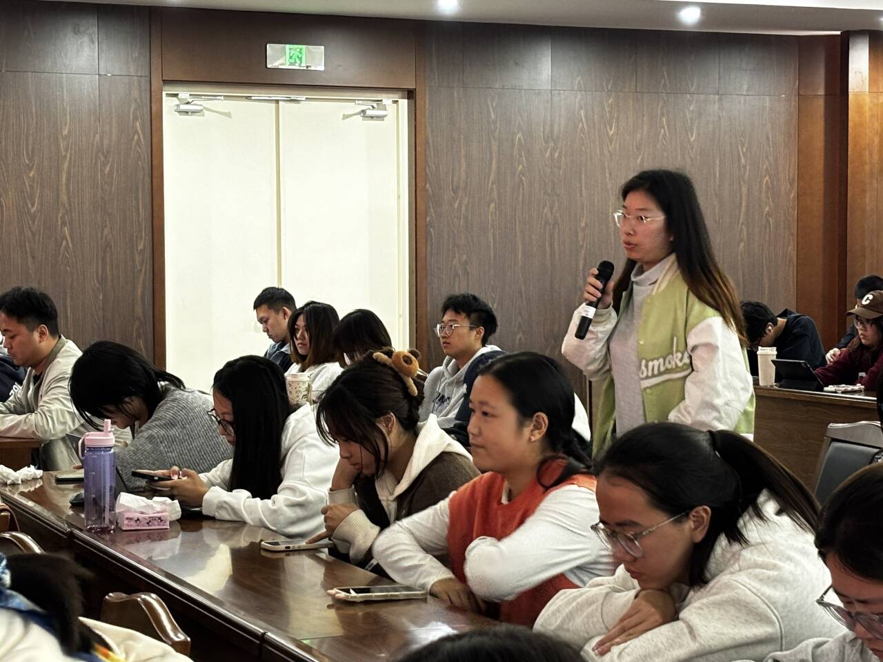 在互动交流环节,学生们踊跃举手,围绕“烛文化的当代传承”等问题与陈军教授深入探讨。陈军教授耐心答疑解惑,结合自身研究经历给出专业建议,以深厚的学识与亲和的态度赢得全场阵阵掌声。