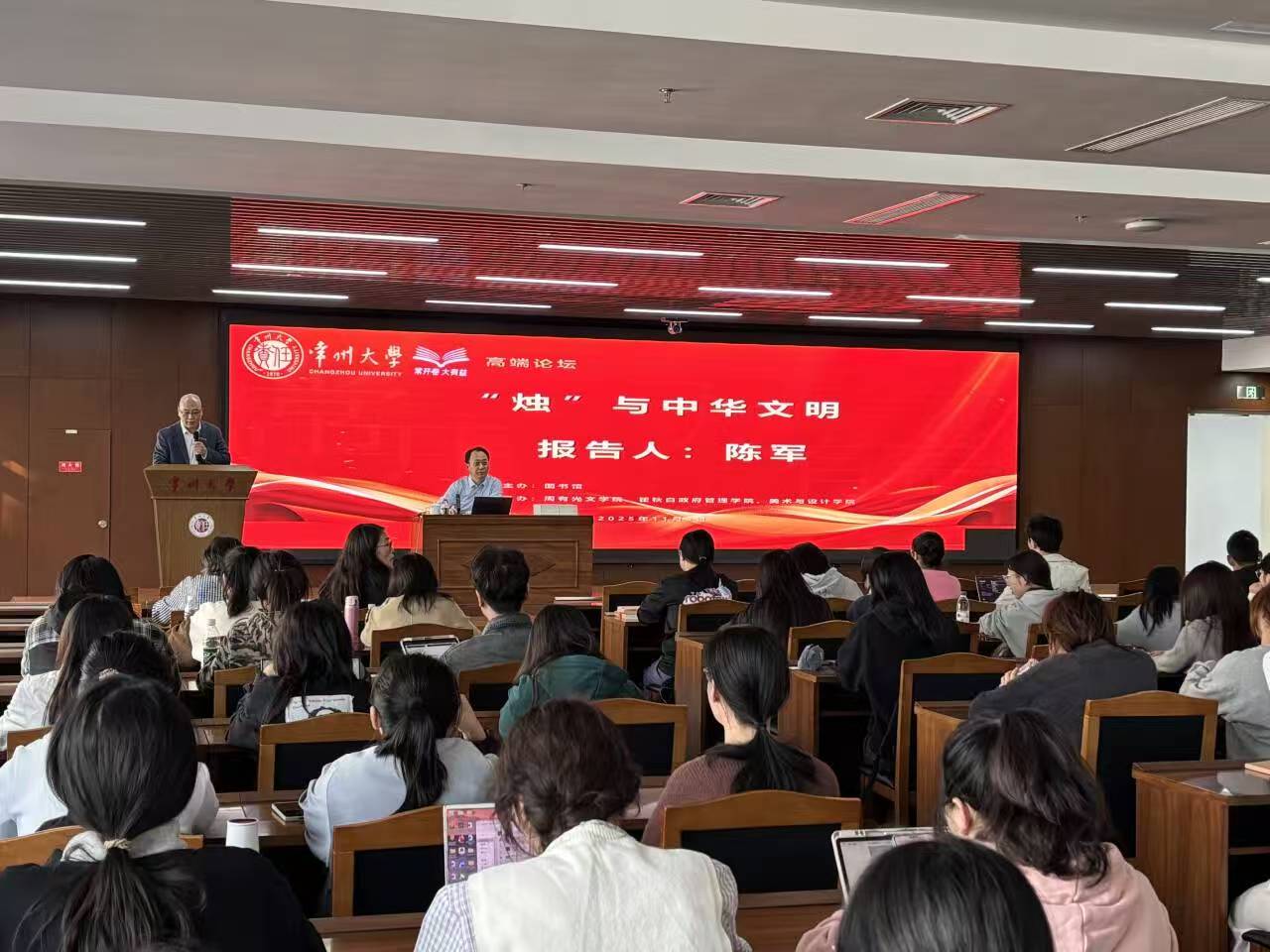 11月5日下午,第五期“常开卷·大有益”高端论坛在西太湖校区图书馆报告厅成功举办。南京图书馆馆长陈军教授受邀作《“烛”与中华文明》主旨报告。活动由图书馆主办,周有光文学院、瞿秋白政府管理学院、美术与设计学院联合承办,图书馆党总支书记,馆长侯新兵主持。